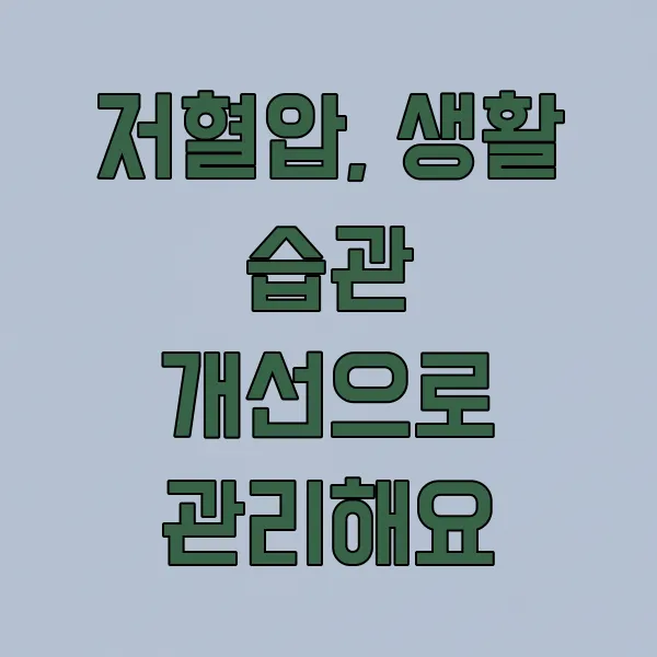 저혈압, 생활 습관 개선으로 관리해요